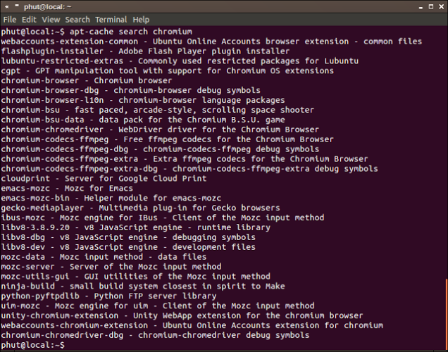 This will return any program related to "searchterm", which you can then easily install with apt-get install. With this command, you don't need to open Synaptic package manager or Software Center for distros like Ubuntu, Debian, Mint, Crunchbang, etc.